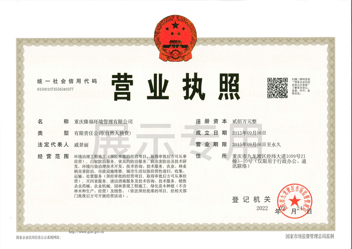 重慶隆福環(huán)境管理有限公司(以下簡(jiǎn)稱“我司”)成立于2015年,另于2022年成立海南分公司。是一家從事專業(yè)白蟻防治、害蟲消殺、消毒防疫、園林景觀施工、滅蟲藥械銷售為一體的綜合性服務(wù)公司。